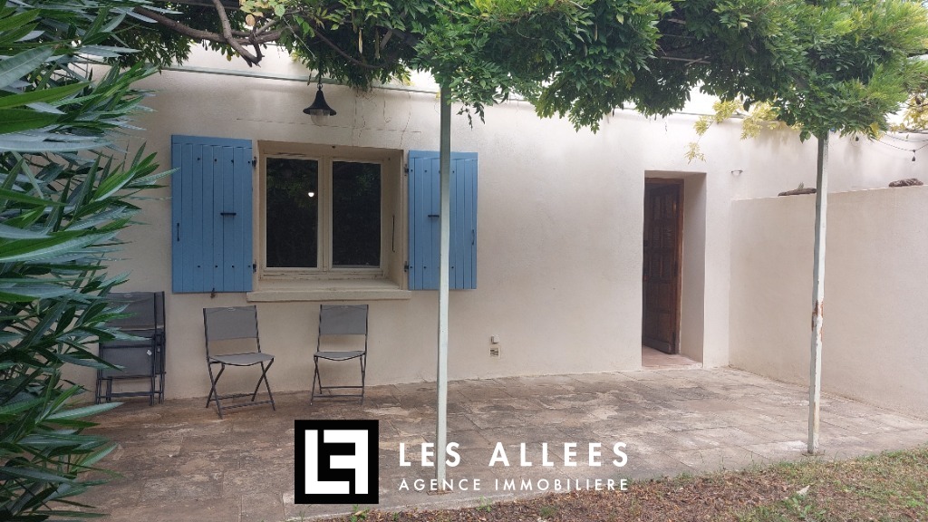 Terrasse d'environ 35 m² avec un jardinet. Stationnement extérieur.