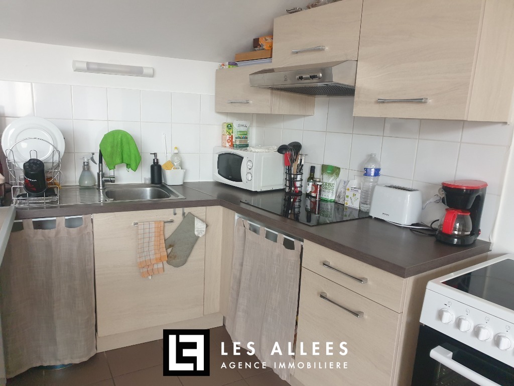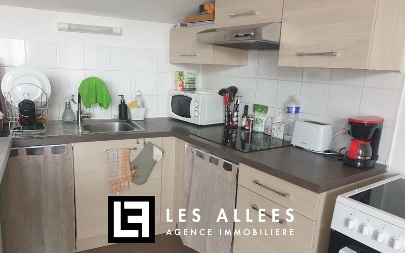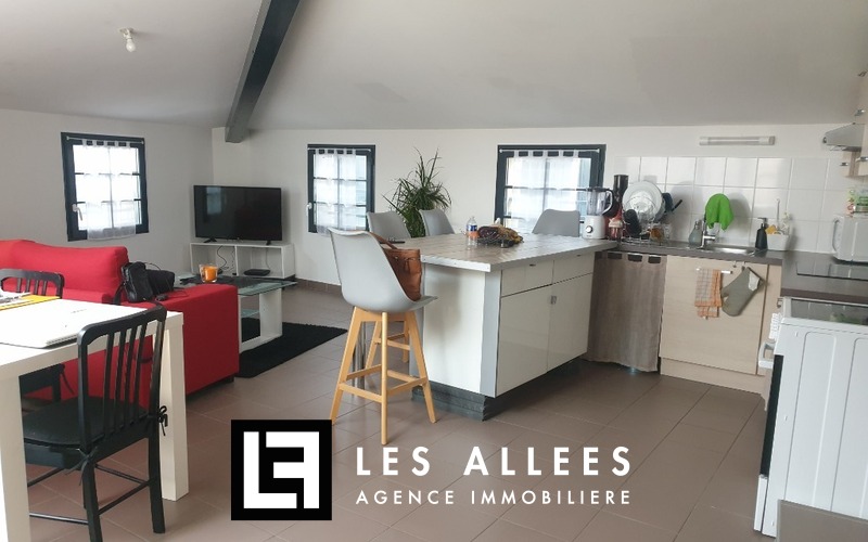 Joli T4 au 3e et dernier étage, comprenant un hall d'entrée, un séjour avec coin cuisine aménagée (meubles hauts et bas, une plaque de cuisson), 3 chambres avec placards intégrés, une salle de bains, wc, une terrasse solarium de 12,48 m².