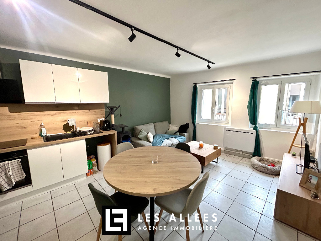 Le logement est composé d’un dégagement, d’une grande pièce à vivre avec cuisine équipée (hotte, plaque et four), de deux chambres, d'une pièce pouvant servir de bureau, d’une salle de bain et d’un WC.
