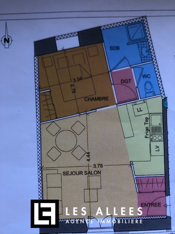 Dans une résidence sécurisée, charmant appartement meublé de 34m² composé d'une cuisine ouverte sur le séjour, une pièce en second jour avec lit deux places, une salle d'eau et un wc.