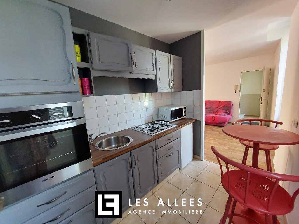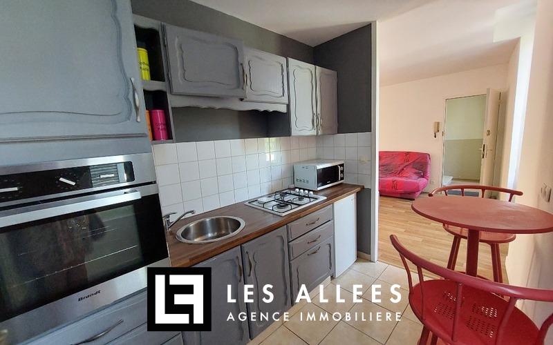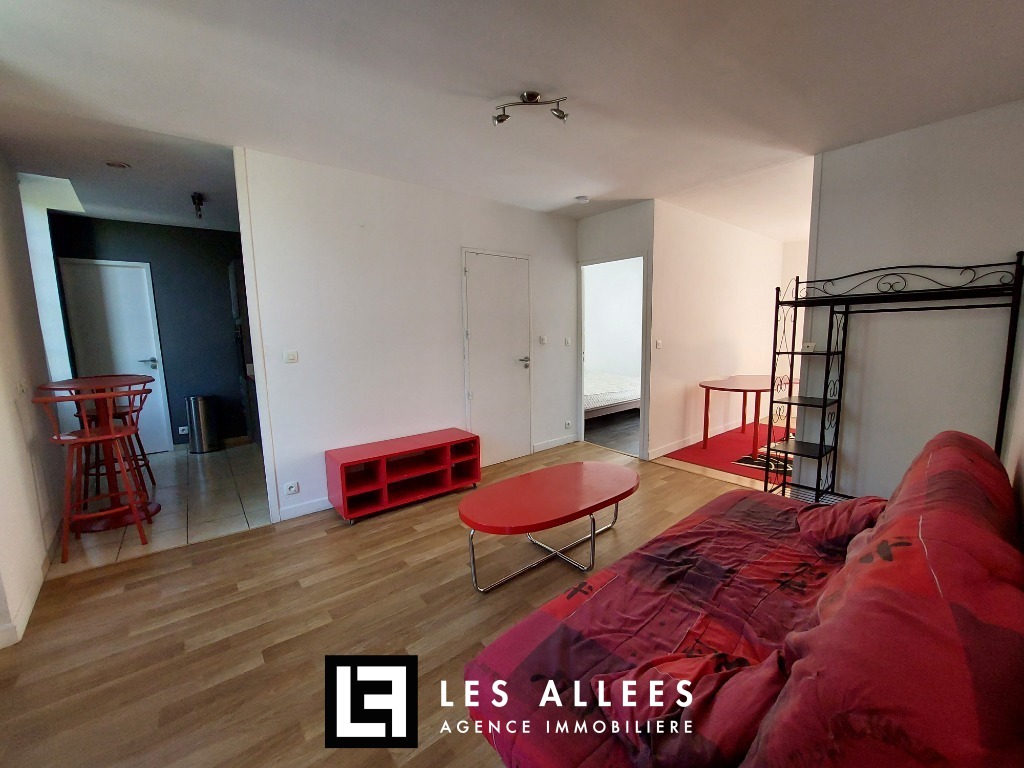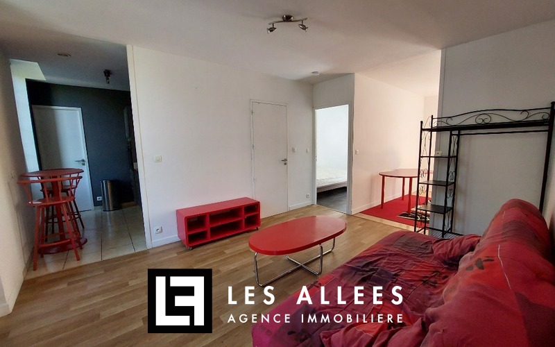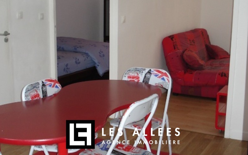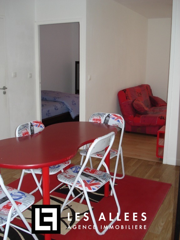 Proche du lycée Alain Borne. Au 1er étage d'un immeuble agréable, T2 bis meublé d'environ 41m² avec cuisine équipée (meubles hauts, bas, four, plaque, micro onde et frigo) ouverte sur séjour, 1 chambre, un bureau ouvert, une salle de bains et un wc.