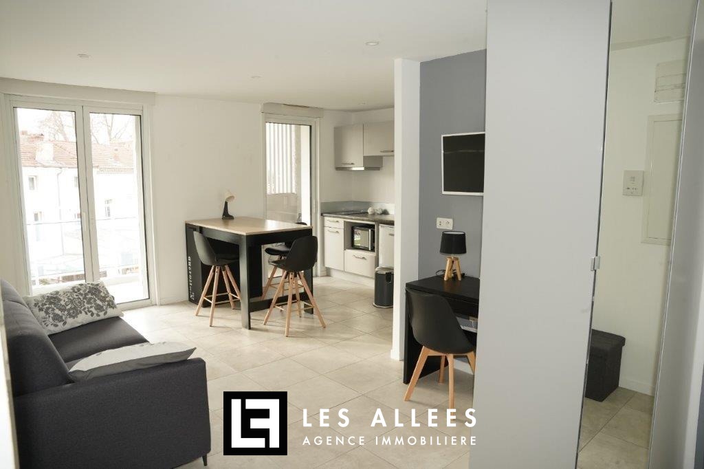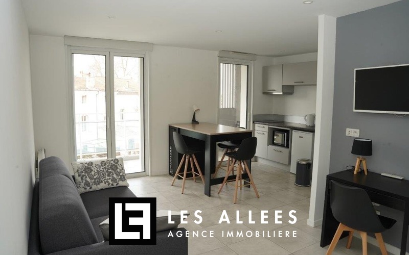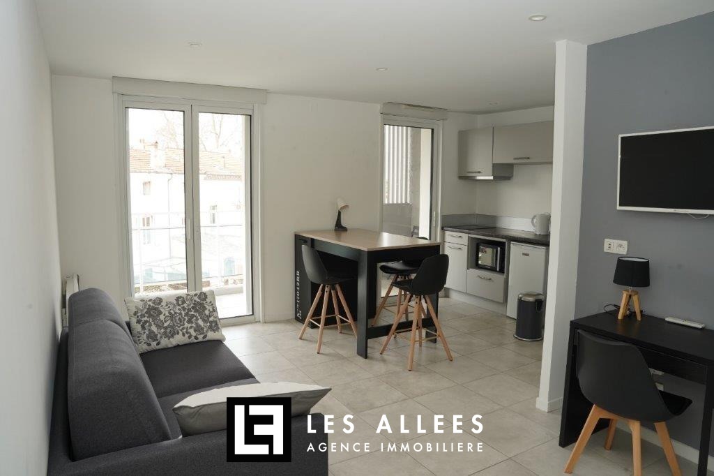 Aux pieds des Allées Provençales, à 5 min de la gare et de l'école d'infirmières, appartement T1 meublé dans une résidence de standing avec ascenseur, comprenant une pièce principale avec coin cuisine équipée (meubles hauts et bas, une plaque vitro céramique, une hotte, frigo) qui donne accès à un balcon d'environ 6m², une buanderie, une salle d'eau avec wc.