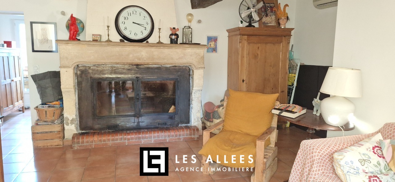 - en rez de chaussée d'une grande pièce à vivre de 33m² exposée S/E avec une grande cheminée