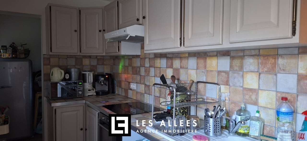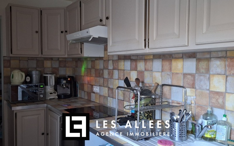 - une cuisine séparée, aménagée et semi équipée (four, plaques et hotte), avec coin buanderie