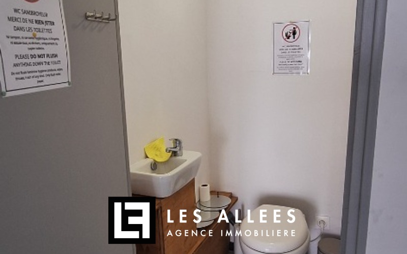 Coin sanitaire séparé avec WC sanibroyeur récent.