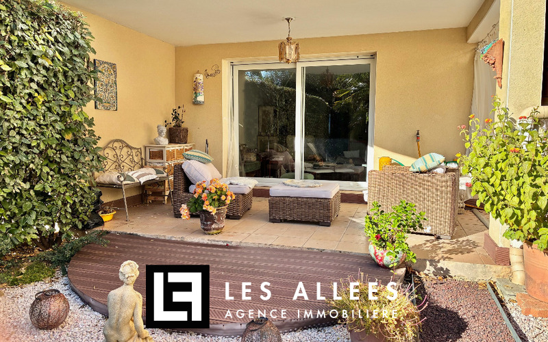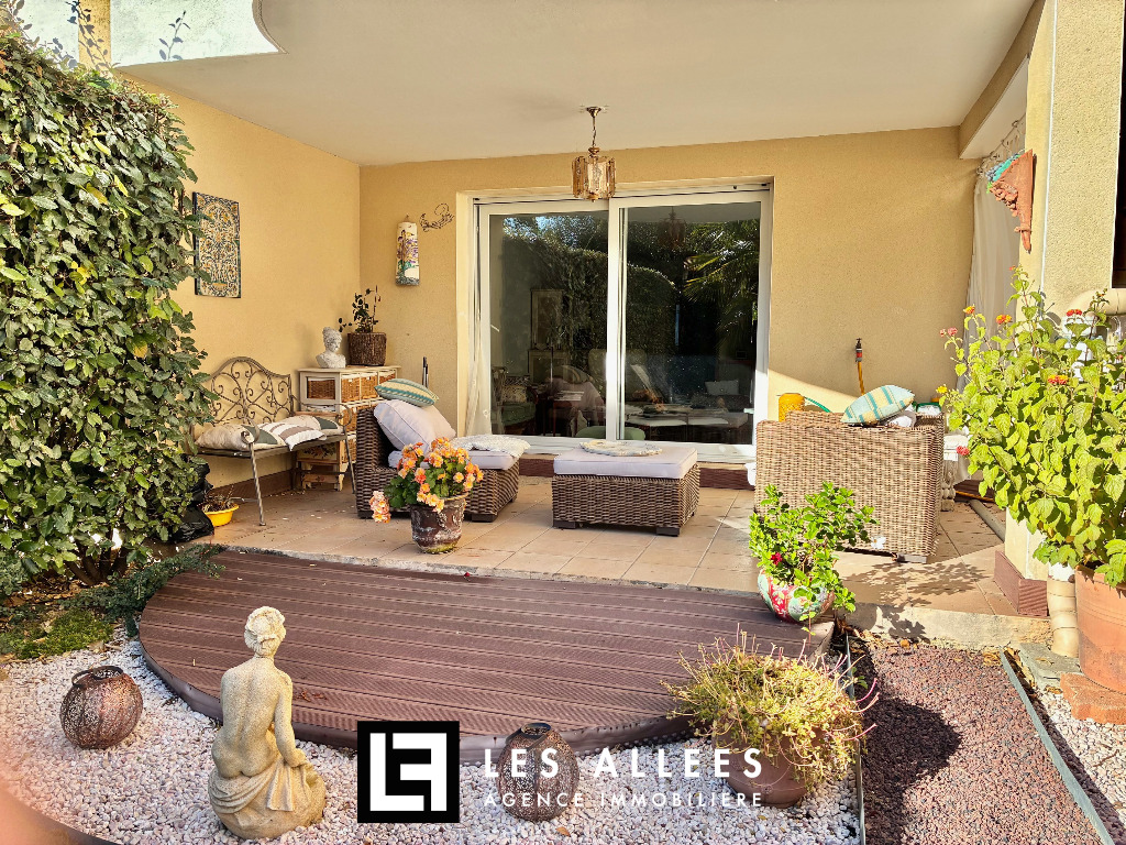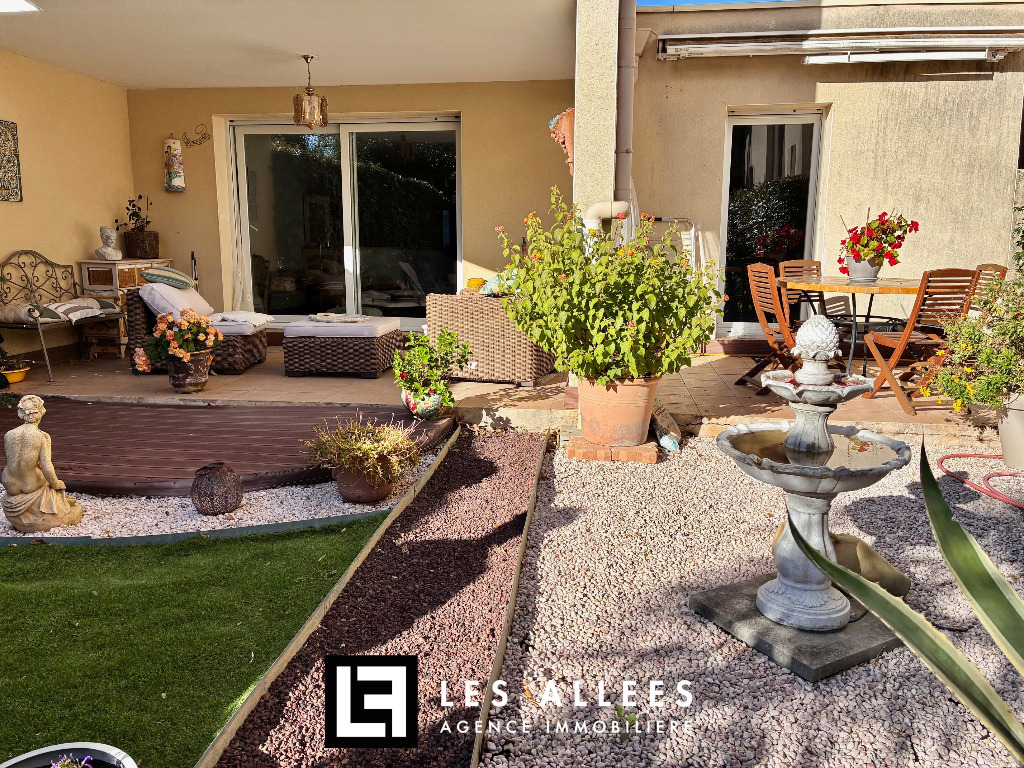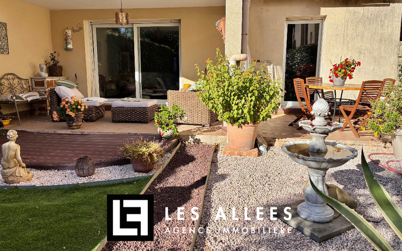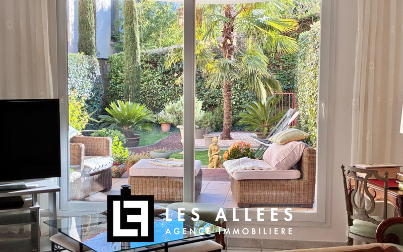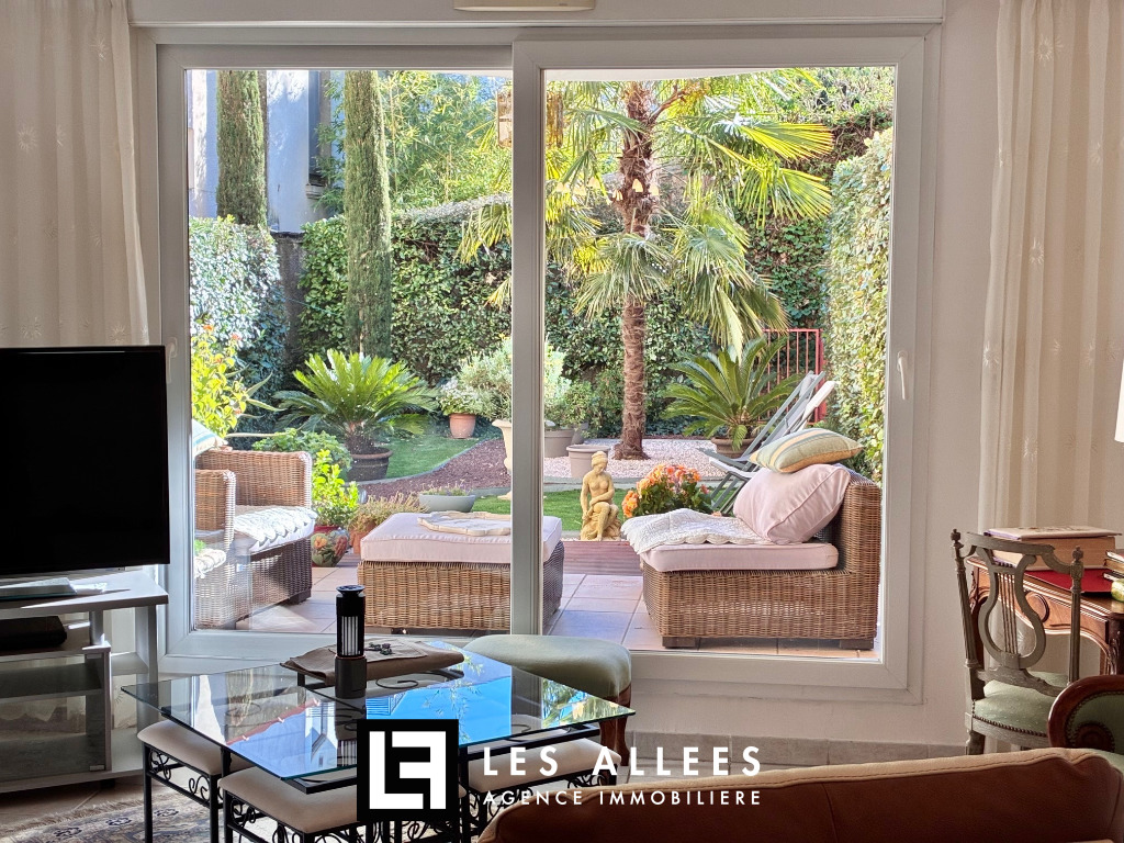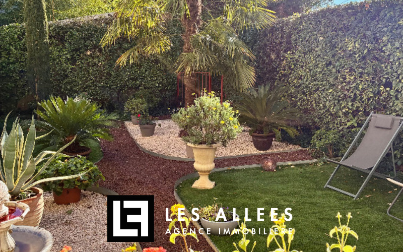 Le jardin joliment fleurie d'essences diverses, d'une centaine de mètre carré avec accès direct au garage et sortie indépendante à l'extérieur de la copropriété.