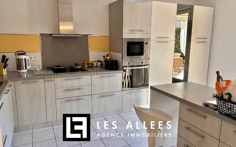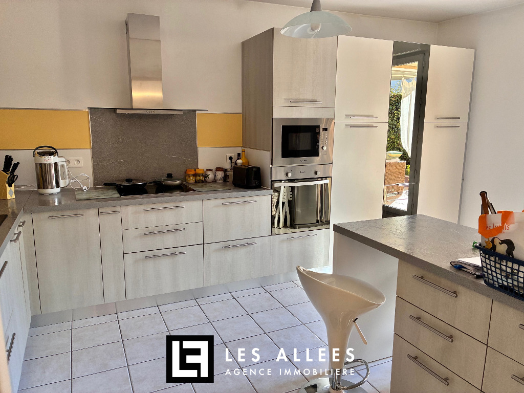 Cuisine équipée séparée, salon séjour de 35 m² environ avec accès à la terrasse et au jardin, 3 chambres avec moustiquaire, salle d'eau et salle de bains.