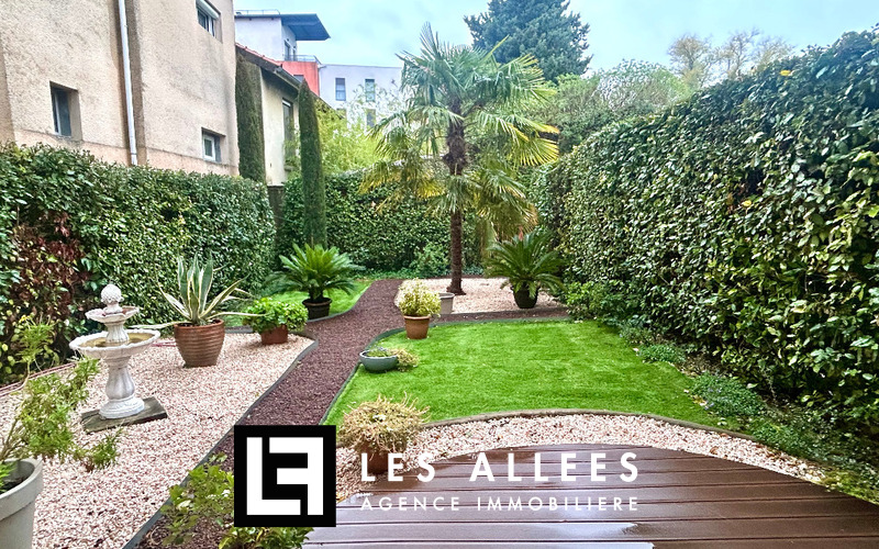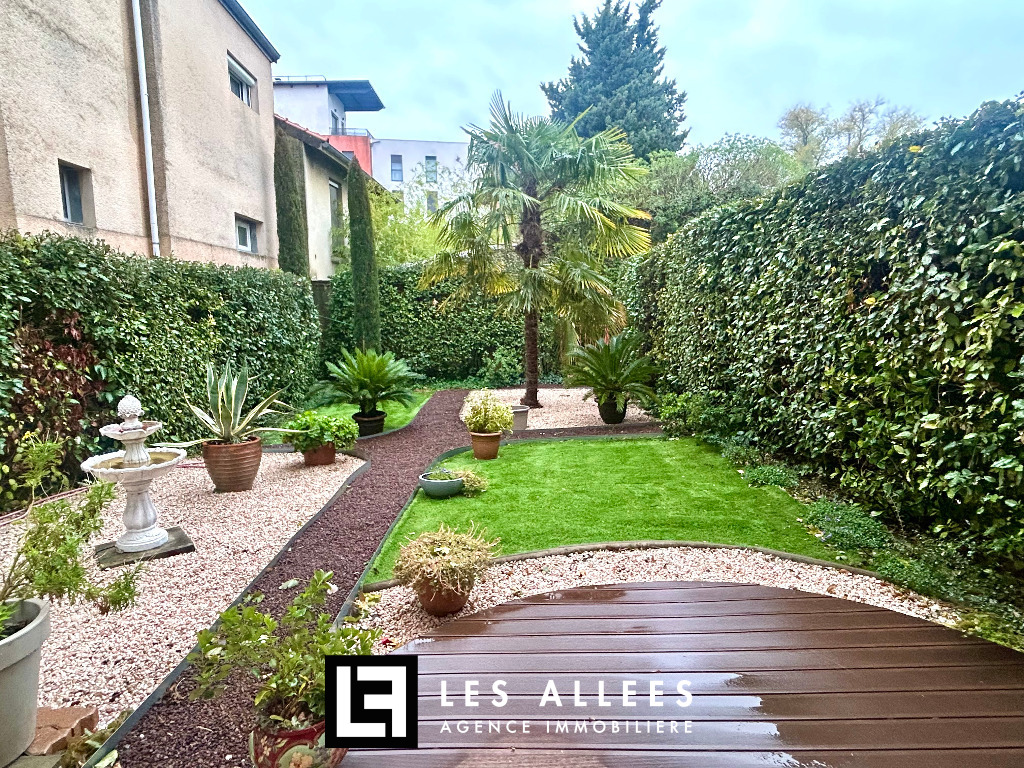 Le jardin joliment fleurie d'essences diverses d'une centaine de mètre carré avec accès direct au garage et sortie indépendante à l'extérieur de la copropriété.