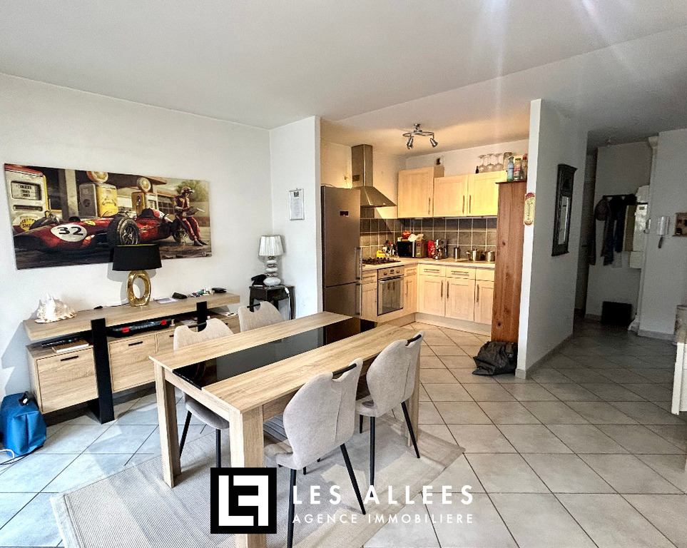 Il se compose d’un hall d’entrée avec placard, d’une cuisine équipée ouverte sur une belle pièce de vie très lumineuse, ainsi que d’un WC indépendant.