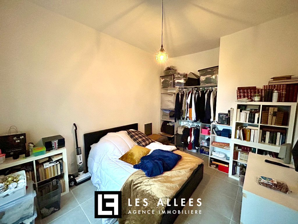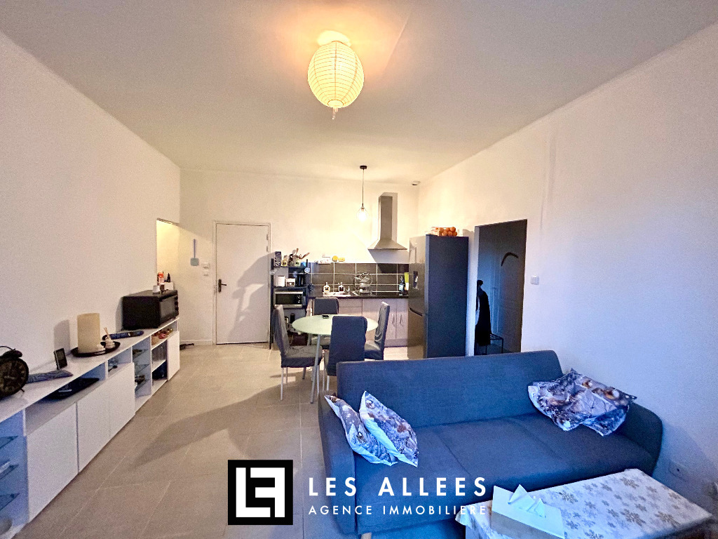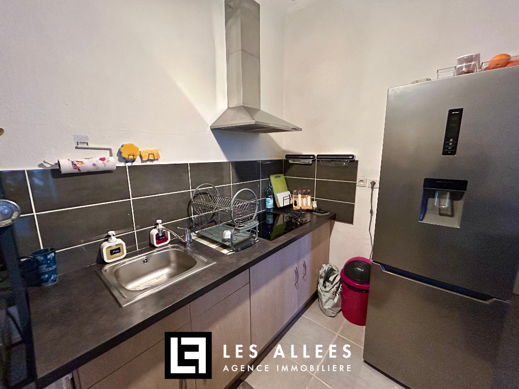 L'appartement propose une cuisine ouverte sur une pièce à vivre de 22 m², un coin cellier/buanderie, 2 chambres (12 m² et 9 m²) ainsi qu'une salle de bains.