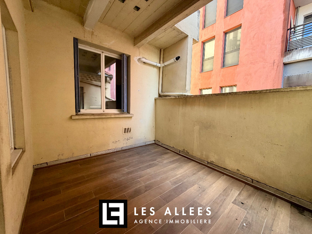 Appartement T3 au 1er étage d'une petite copropriété d'une surface de 86 m2 habitables comprenant une cuisine équipée donnant accès sur une terrasse permettant de manger à l'extérieur, un séjour, 2 chambres dont une avec balcon donnant sur le Théâtre et une salle d'eau avec W.C.