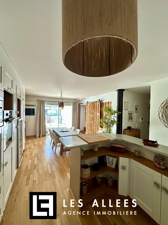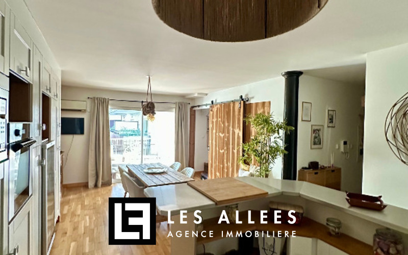 Très belle cuisine équipée faite sur mesure ouverte sur salon séjour de 27 m² avec accès direct a la terrasse exposée sud.