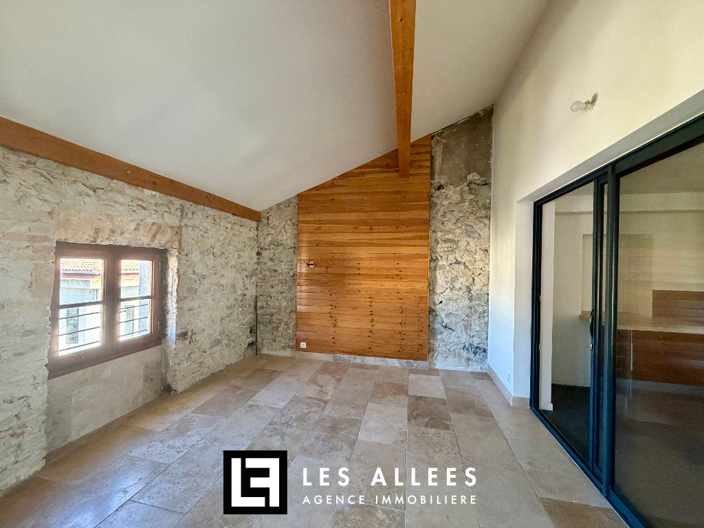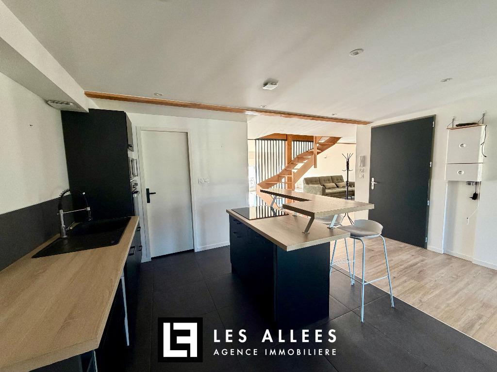 Une entrée desservant une grande cuisine équipée, ouverte sur une pièce de vie spacieuse de 57 m². Sur ce même niveau, vous trouverez également un bureau pouvant faire office de chambre, un cellier et un W.C indépendant.