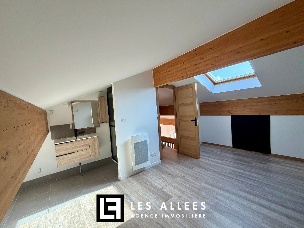 À l’étage, l’appartement dispose de deux chambres, chacune avec sa propre salle d’eau.