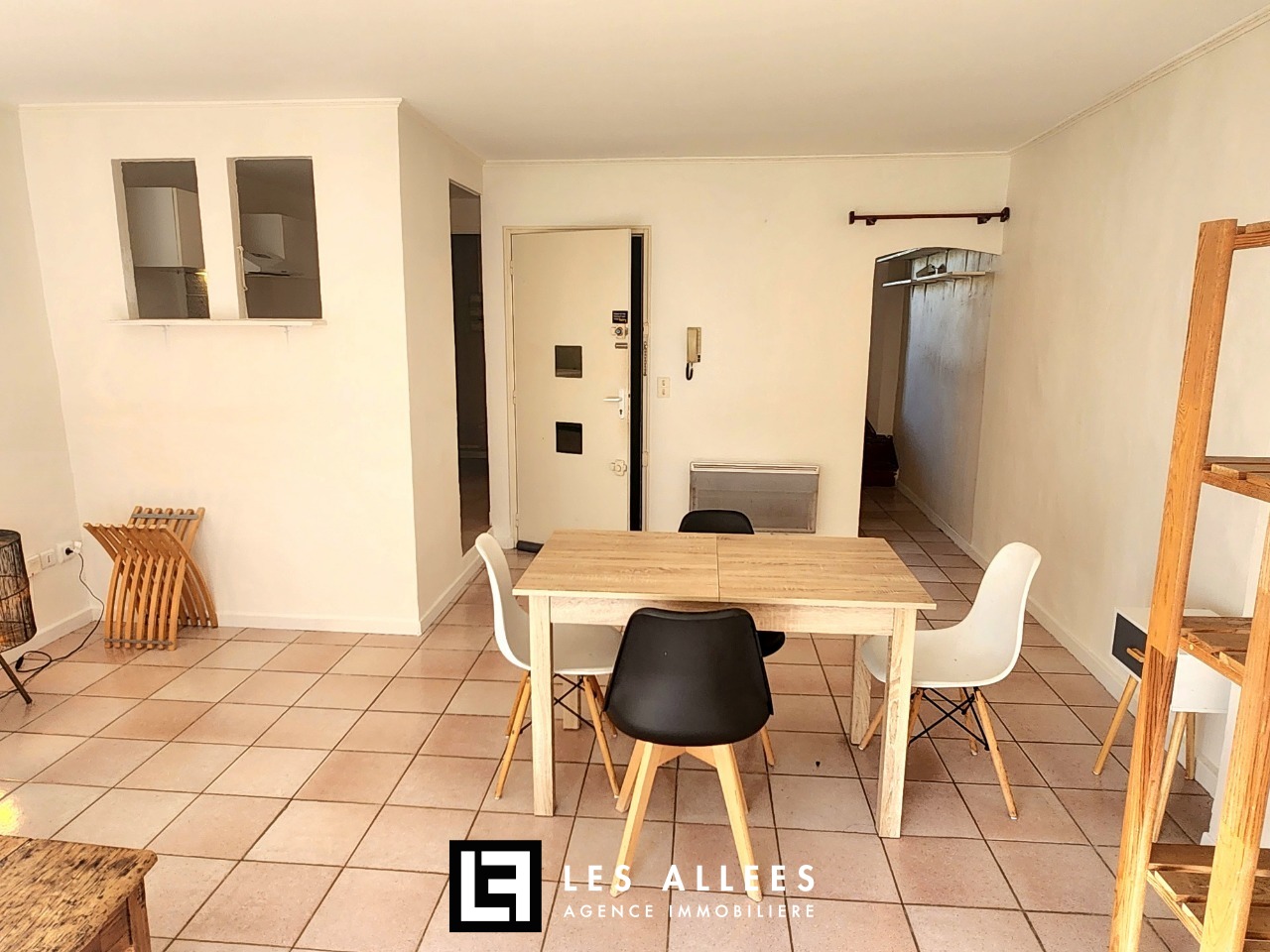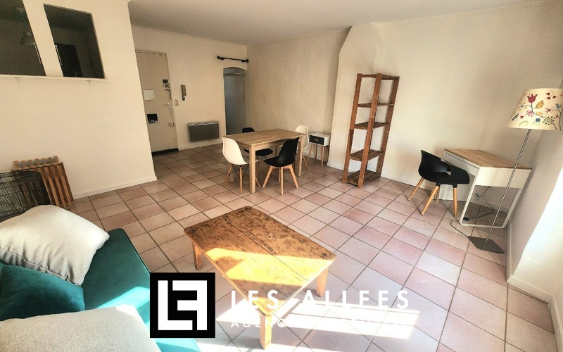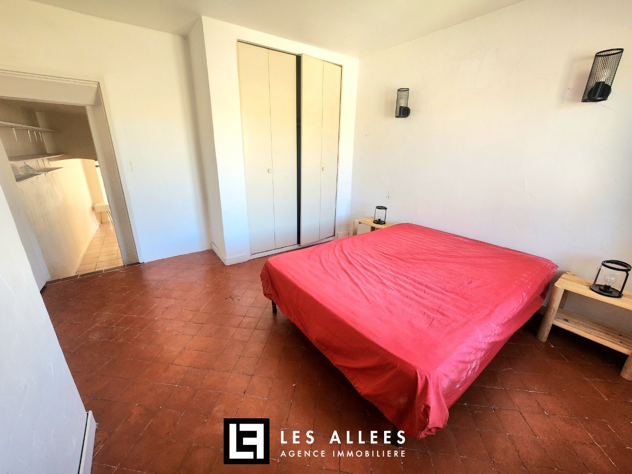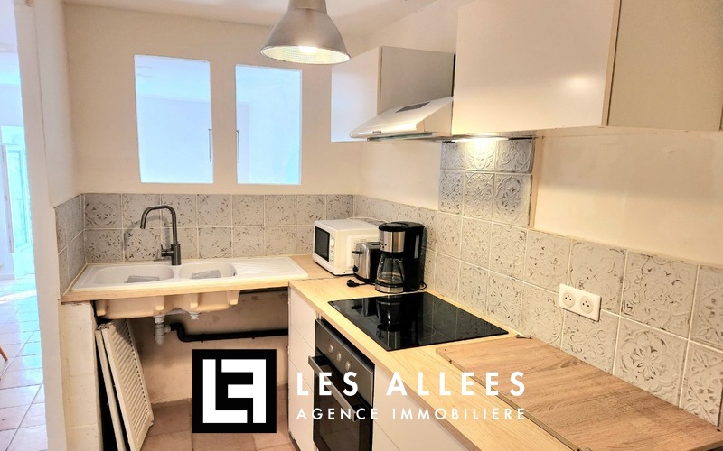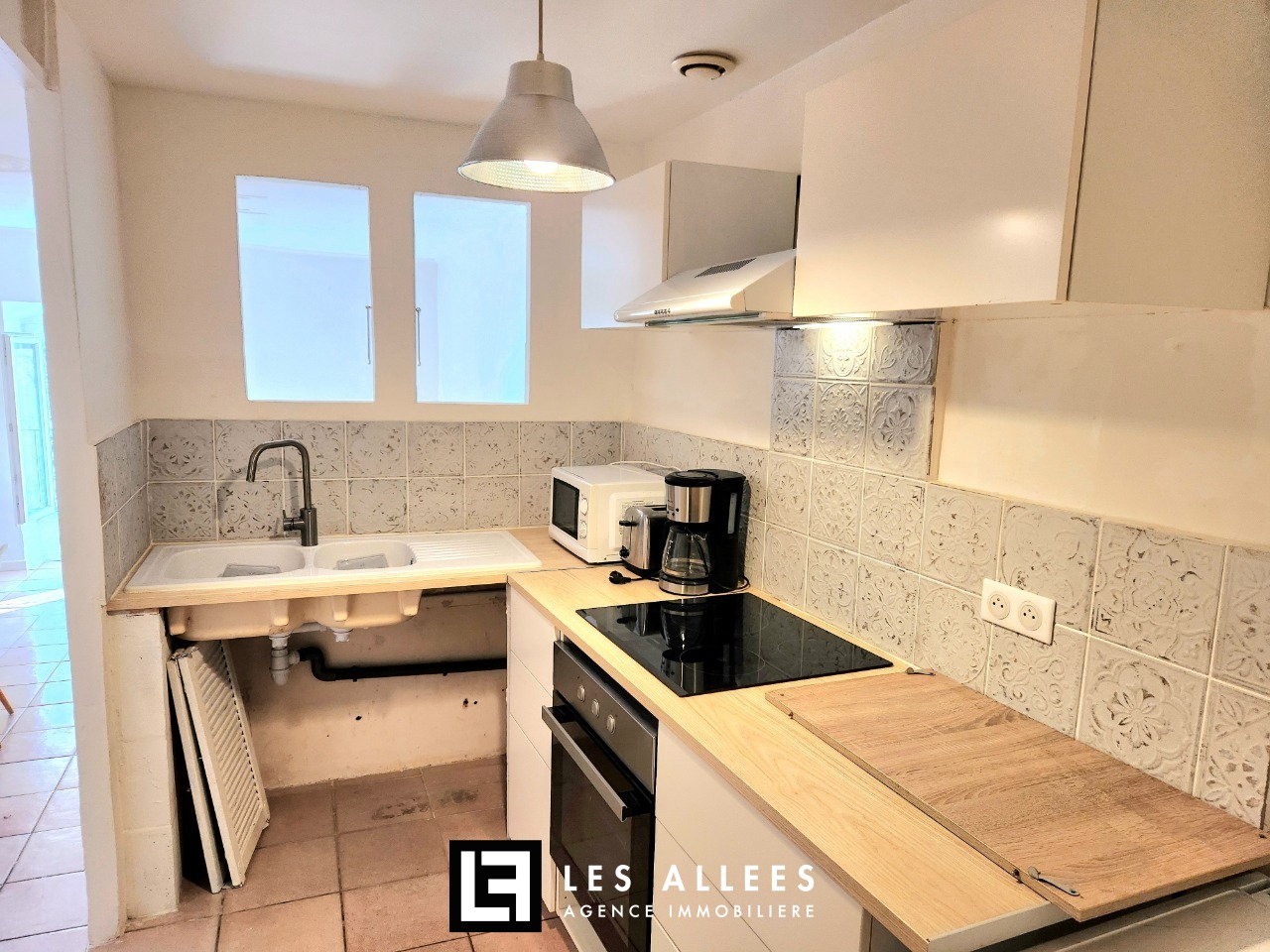 A proximité immédiate du cœur de village, ce T2 plein de charme et traversant bénéficie d 'une belle pièce à vivre avec espace cuisine séparé ( induction, hotte, four électrique) ainsi q u 'une vaste chambre avec tommettes anciennes au sol, grand placard et salle d 'eau privative .