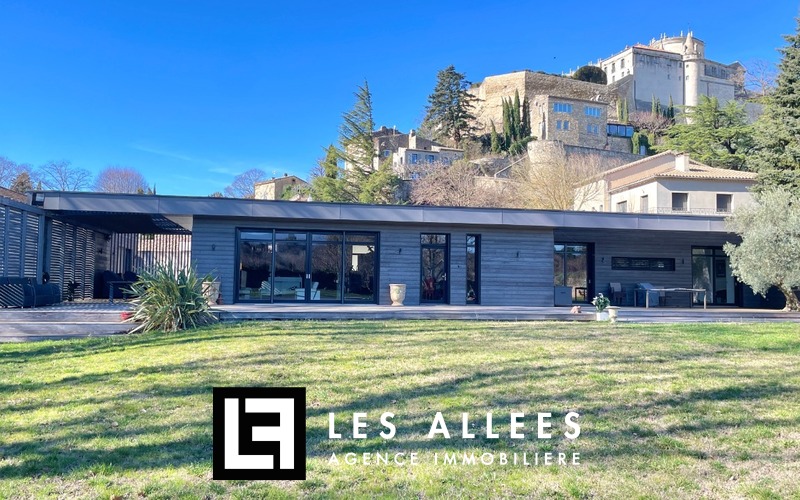 Dans un environnement privilégié, au pied du Château de Grignan et bénéficiant d’une vue remarquable, découvrez cette maison contemporaine développant 226,3 m² de surface totale, implantée sur une parcelle de 2 500 m².