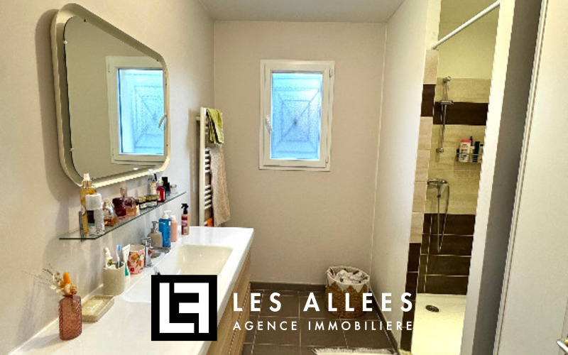 Elle comprend une belle pièce de vie avec cuisine équipée, une buanderie, un WC indépendant, une salle d'eau et deux chambres avec placards.