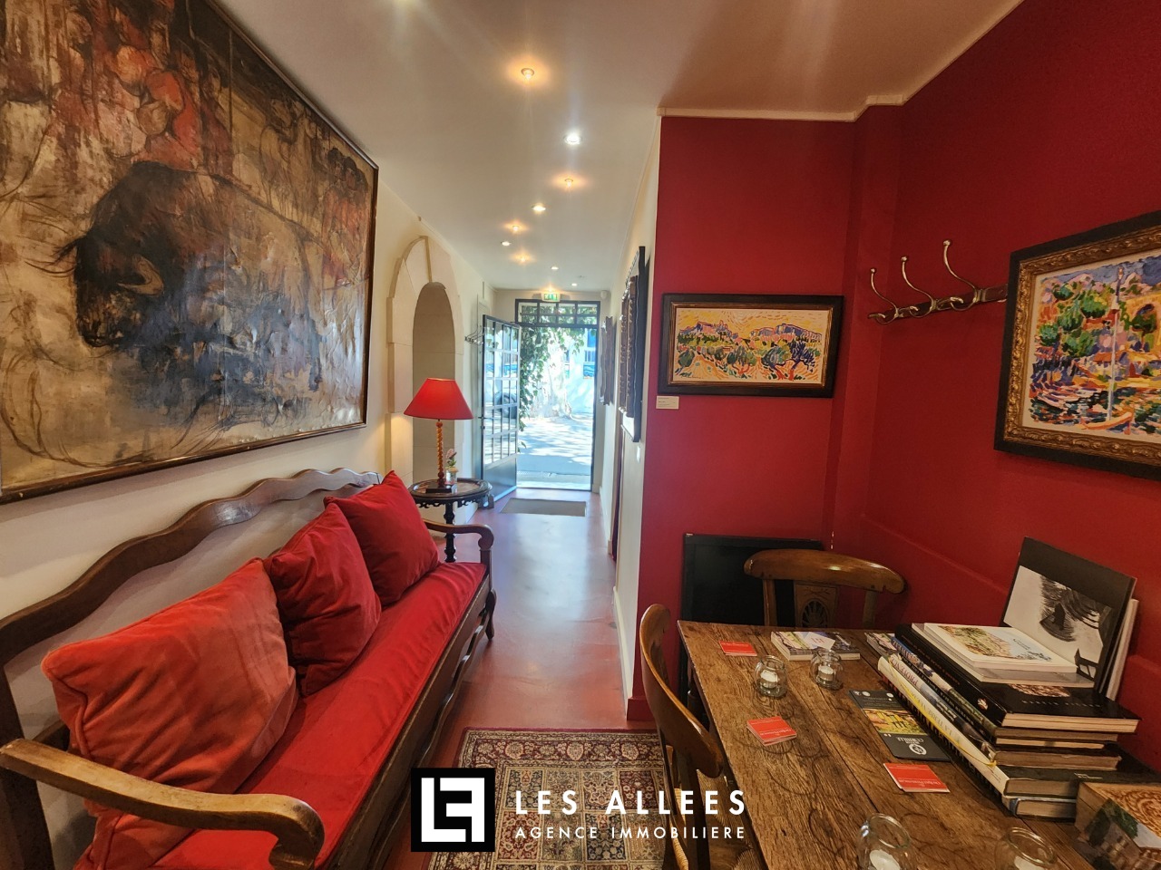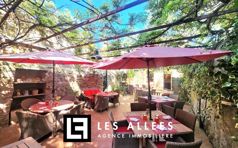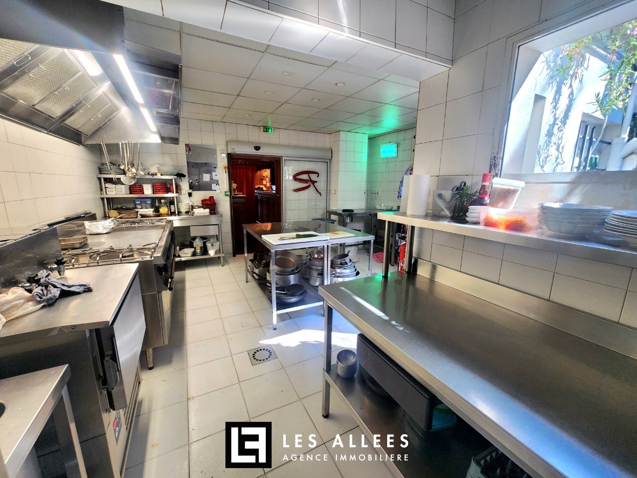 Actuellement configuré en restaurant ( 150m²) avec patio végétalisé de 65m² ainsi qu' un vaste toit terrasse avec piscine chauffée accueillant un appartement de 100m² et une petite cour avec portail coulissant pour le stationnement d 'un véhicule, cet ensemble immobilier bénéficie d 'un emplacement premium.
