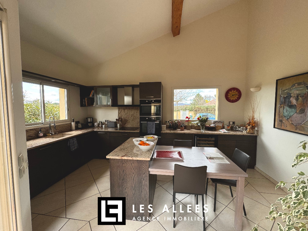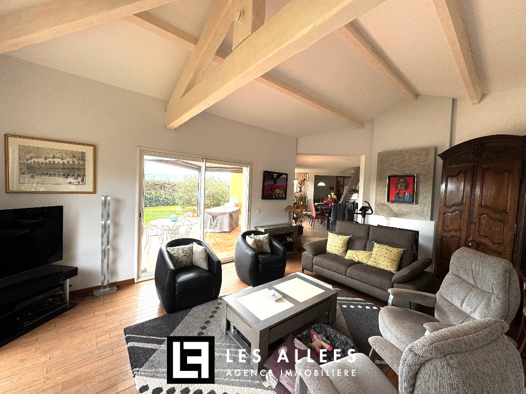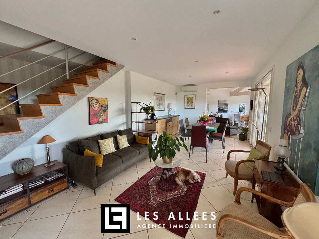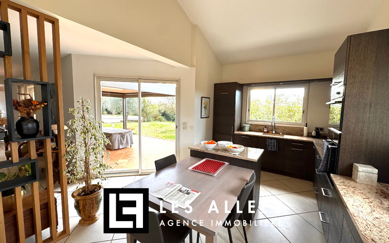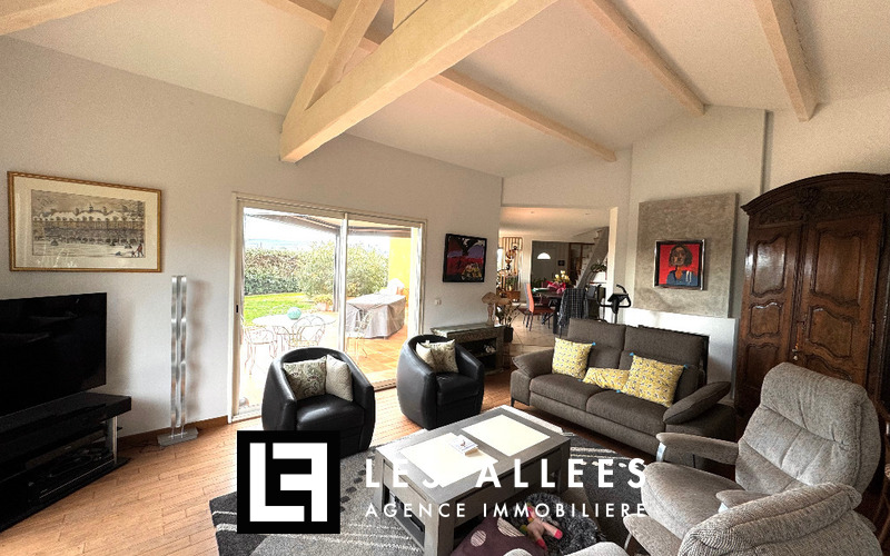 Grand hall d'entrée, cuisine équipée, séjour et double salon, le tout très lumineux avec accès direct sur le jardin.