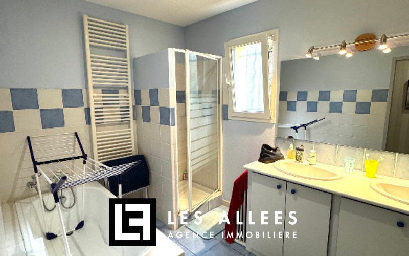 3 chambres, salle de bains avec douche et baignoire.