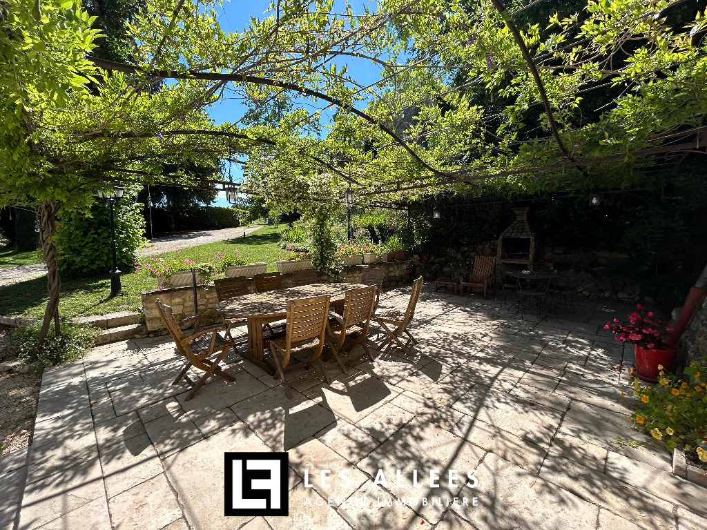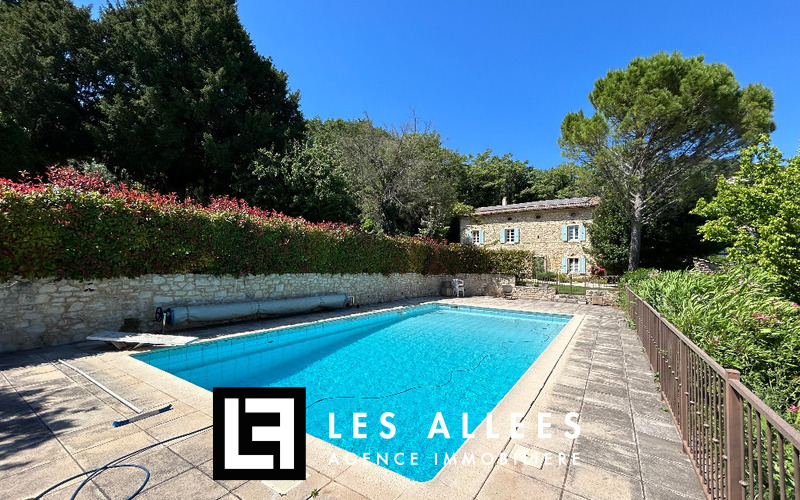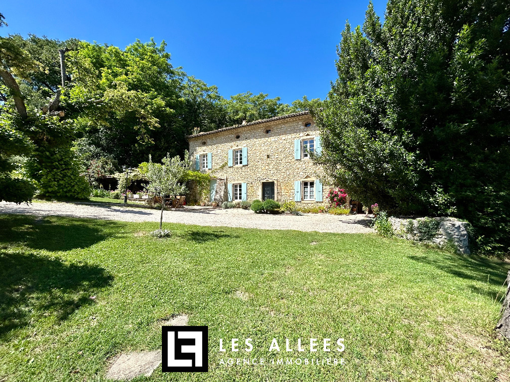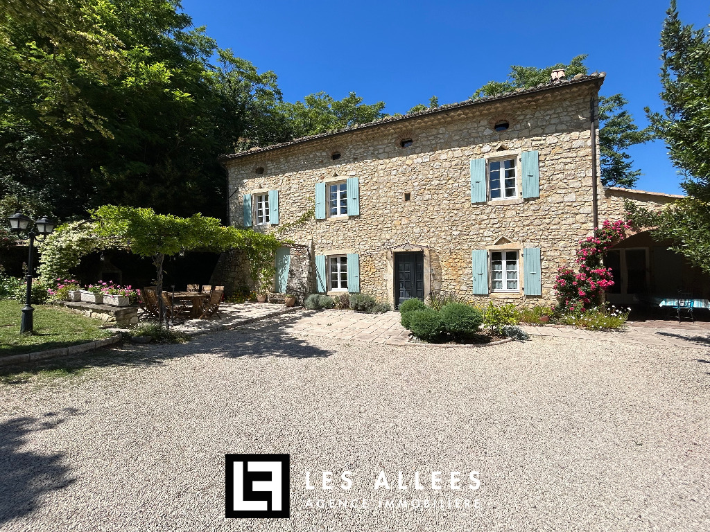 A proximité immédiate de Montélimar, joli mas en pierre d'une surface de 311 m² habitables sur un terrain entièrement clos et arboré de 3 947 m² avec piscine de 12 x 6.