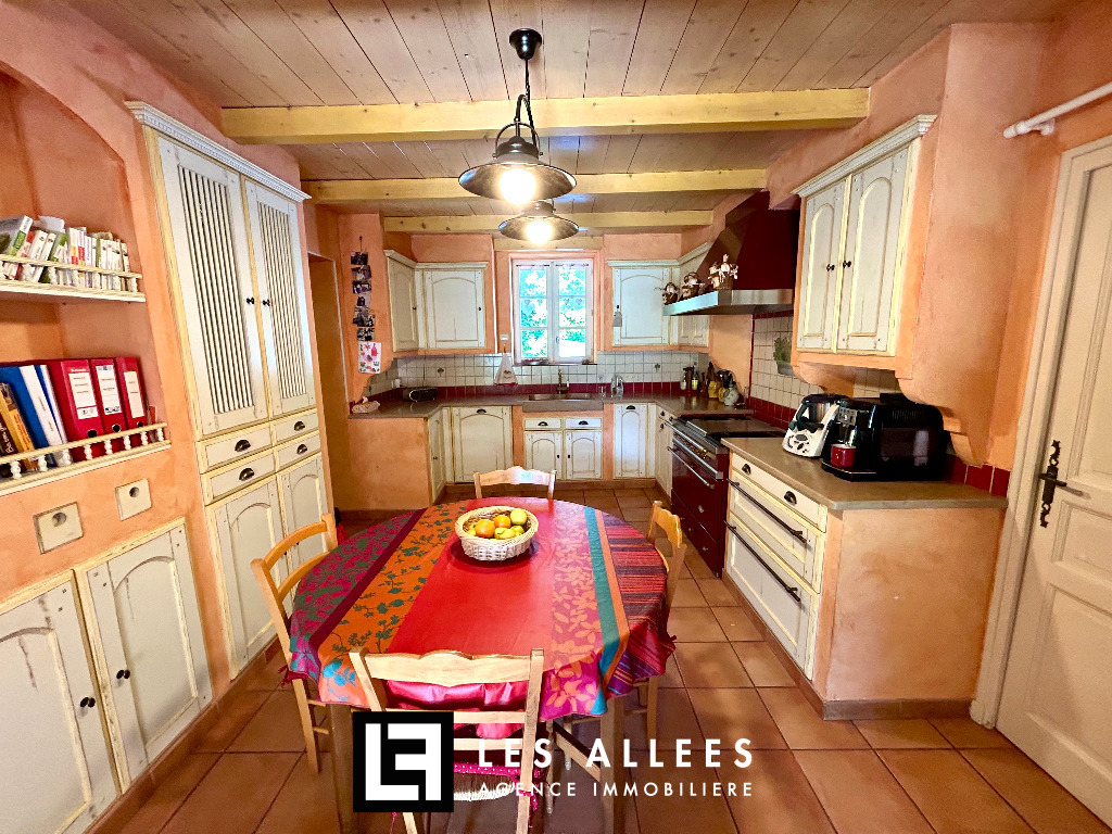 La propriété propose au RDC une pièce à vivre d'environ 50 m², une cuisine équipée, un coin cellier/buanderie, et une belle suite parentale.