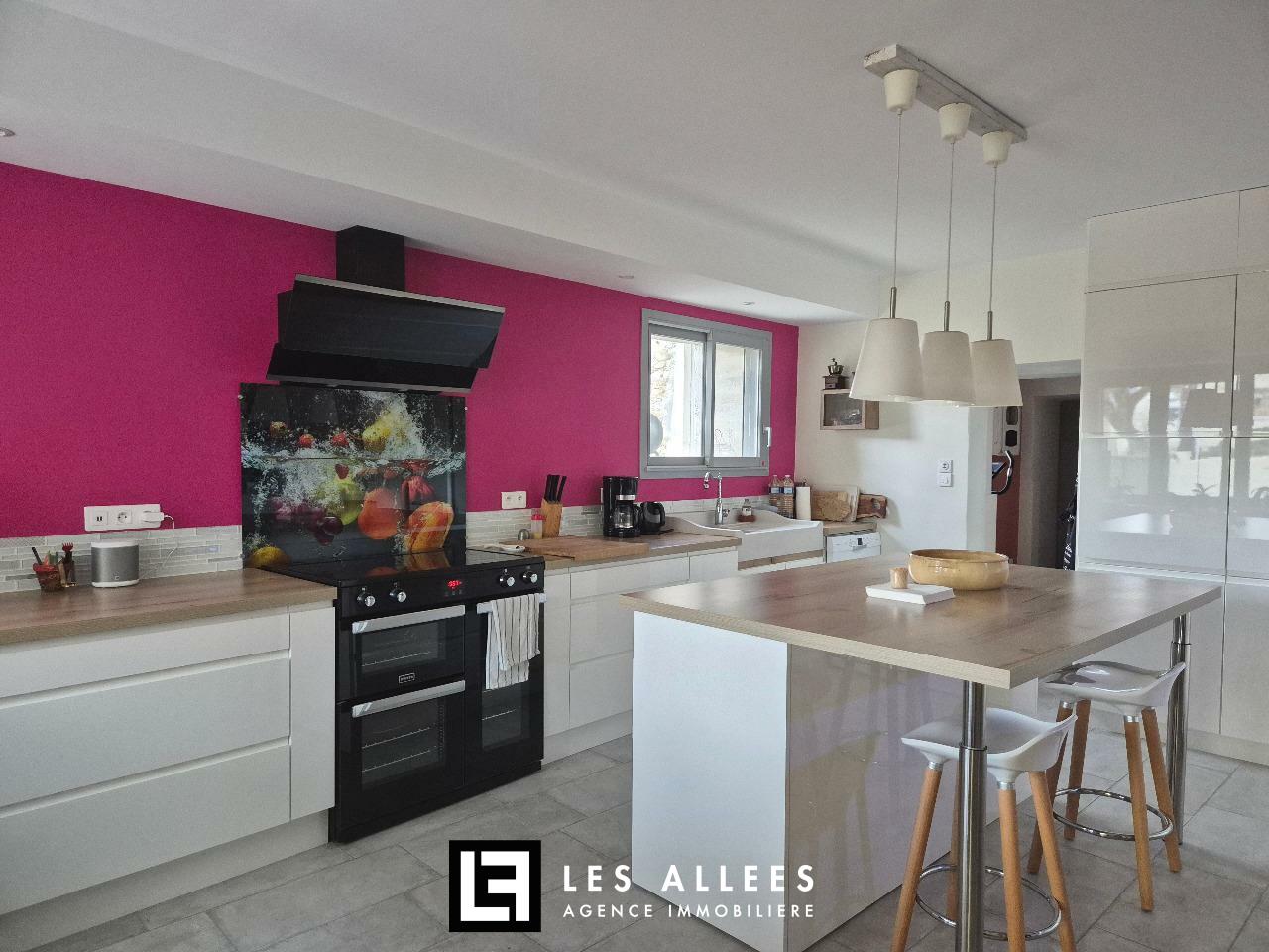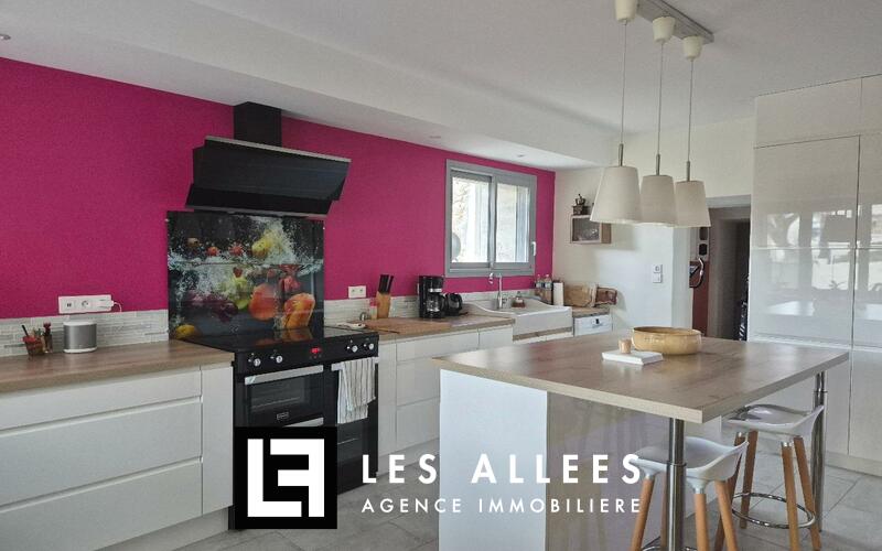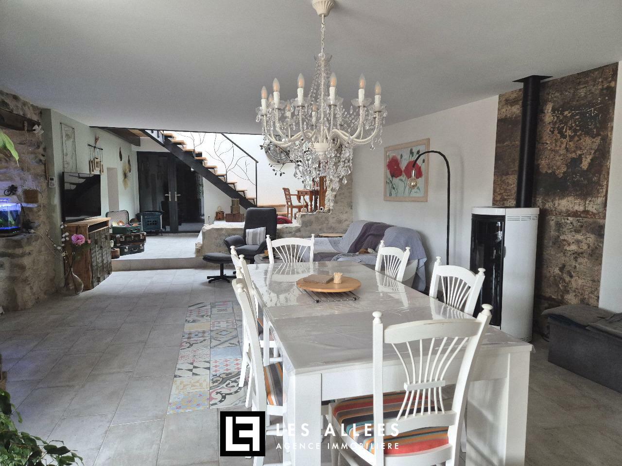 Séjour et cuisine spacieux et lumineux, un petit salon, 3 chambres à l'étage (possibilité de créer une suite parentale en + avec sa terrasse privée), salle d'eau, 2 wc, buanderie, cellier et cave... pour + de 150 m² habitables.