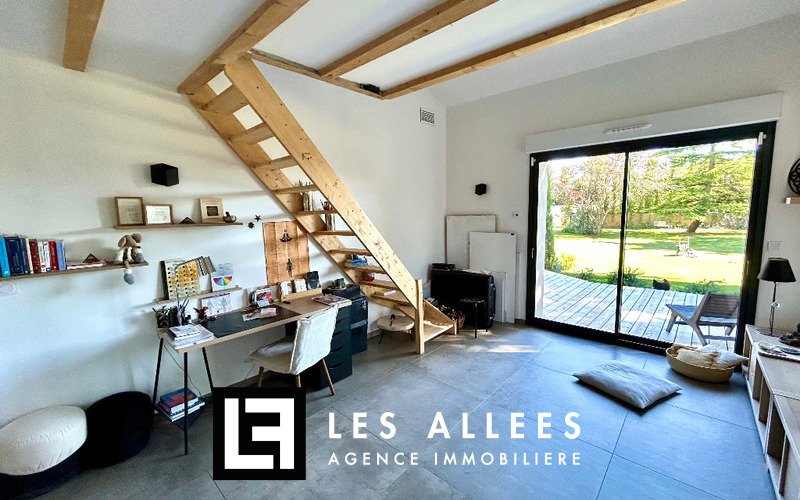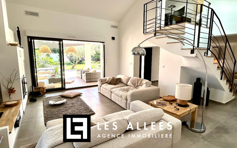 Elle se compose d’un hall d’entrée avec placards, d’une cuisine équipée ouverte sur une salle à manger, ainsi que d’un séjour lumineux avec accès direct à une grande terrasse couverte.