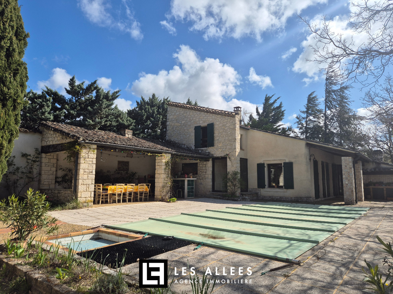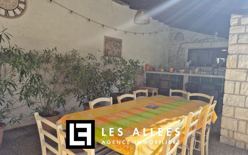 Piscine enterrée, chauffée avec sa terrasse couverte et son bar.
