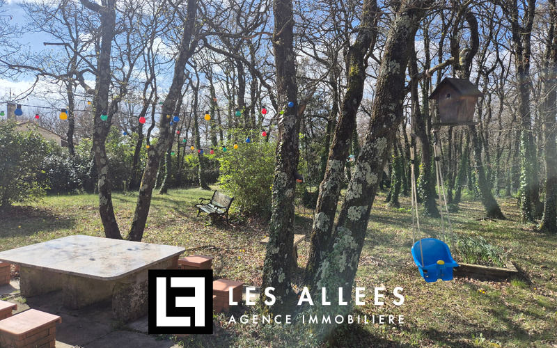 Jardin plat et arboré.
