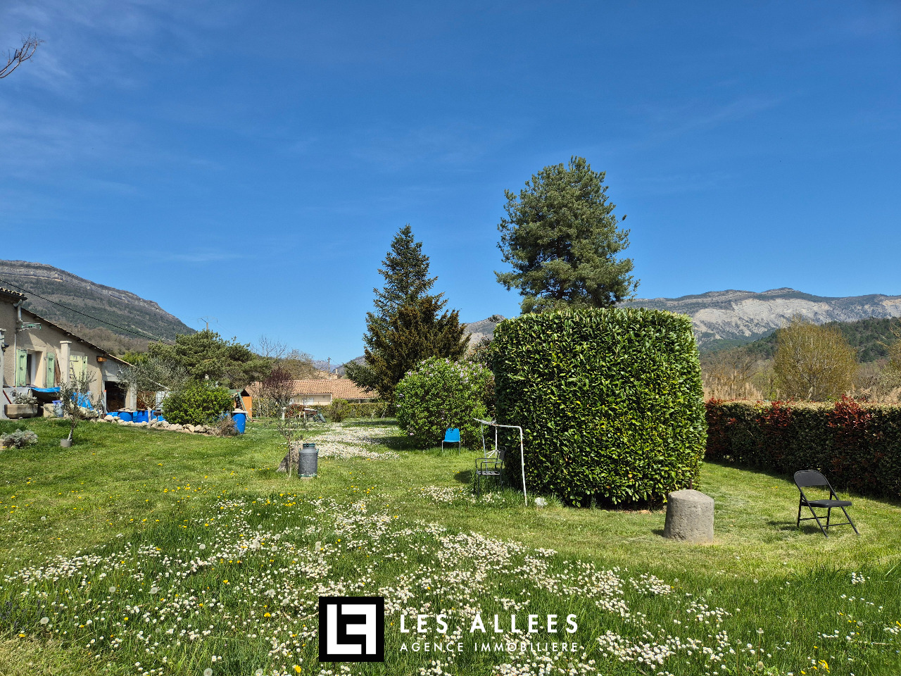 Maison avec beau jardin et vue sur les montagnes